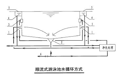 了解更多+國際泳聯(lián)推薦的循環(huán)方式為“逆流式”即池底布滿水口,池沿設置溢槽,水從池底進入從池鹽溢出回到泳池循環(huán)處理設備,這種循環(huán)方式的優(yōu)點是布水相對均勻。