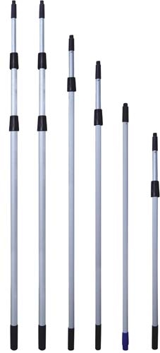 游泳池伸縮桿為兩段伸縮,有5米和8米兩種規格。5米的為兩段2.5米的通過伸縮桿接頭連接而成,8米的則為兩段4米的伸縮。伸縮桿的一頭為人工控制端,防滑,適合手握。另一端為通用接口,可以連接救生鉤、撈網、吸污頭、池刷等。