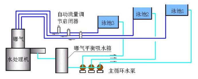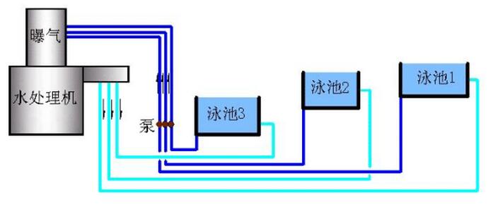盡可能多地合并使用一套游泳池水處理設備,使造價成倍節省,運營費大幅度下降,還使備池池水互相調劑。