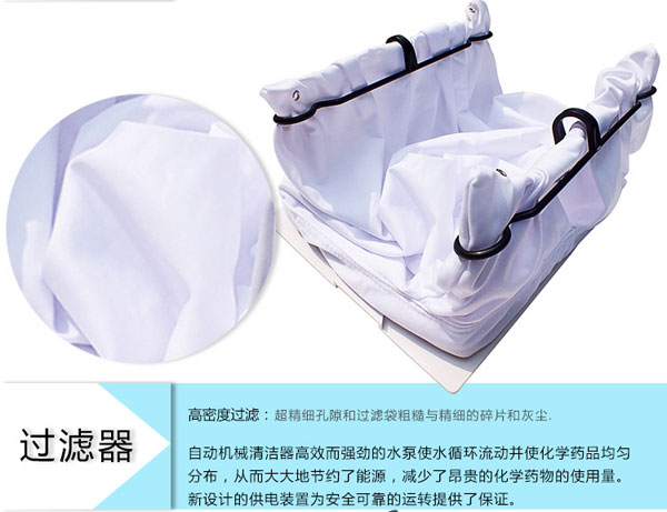 3、同時過濾袋指示燈讓我們知道何時要傾倒袋中的雜物。工作周期短,高級程序設(shè)計使人們僅需6小 時就可以清潔泳池一次。